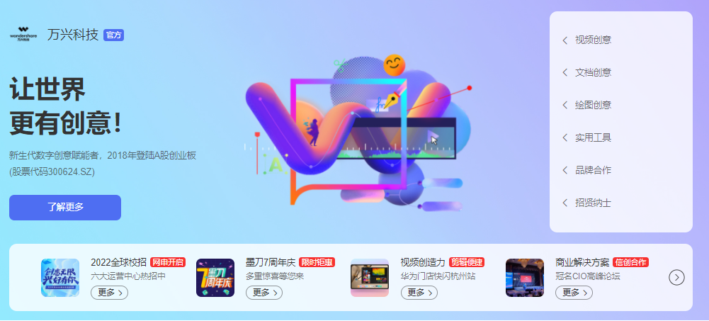 作为全球领先的新生代数字创意赋能者 ,97国际科技自2003年起顺势而为 ,深耕数字创意软件领域 ,将“中国智造”的优质软件产品推向全球 ,旗下明星产品包括97国际喵影、97国际图示、97国际脑图、墨刀、97国际PDF、97国际优转、Wondershare Filmora、Wondershare Vidair、StoryChic、Beat.ly等 ,公司也从首创期的几人团队生长为今天近1500人的全球化团队。克日 ,97国际科技还启动2022届全球校园招聘 ,面向海内及外洋结业生开放凌驾200个校招职位继续扩展人才。结业生可入职97国际科技长沙、深圳、杭州、北京、西安、郑州等运营中心 ,部分岗位还可依事情需要在全球轮岗。