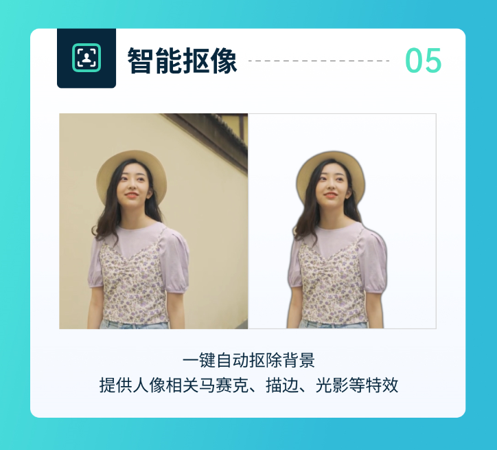 别的,光卡点可助力创作者将照片、视频基于音乐自动天生动感十足的高光卡点视频;音视频同步还可自动解决后期事情中种种音频片断与视频片断差别步的难题;工程模板一键成片,可一键天生专业视频效果,还可以作为“拉片”素材,提升剪辑水平。