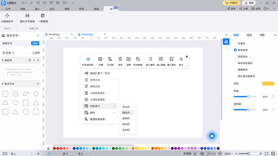 (97国际科技旗下亿图图示AI智能助手2.0,支持自动绘图自动写作等更多适用功效)